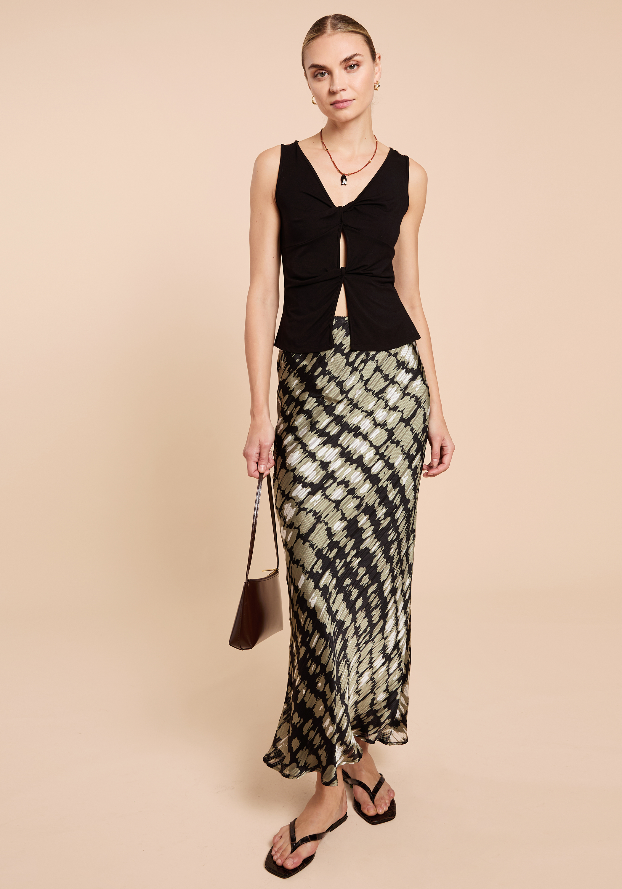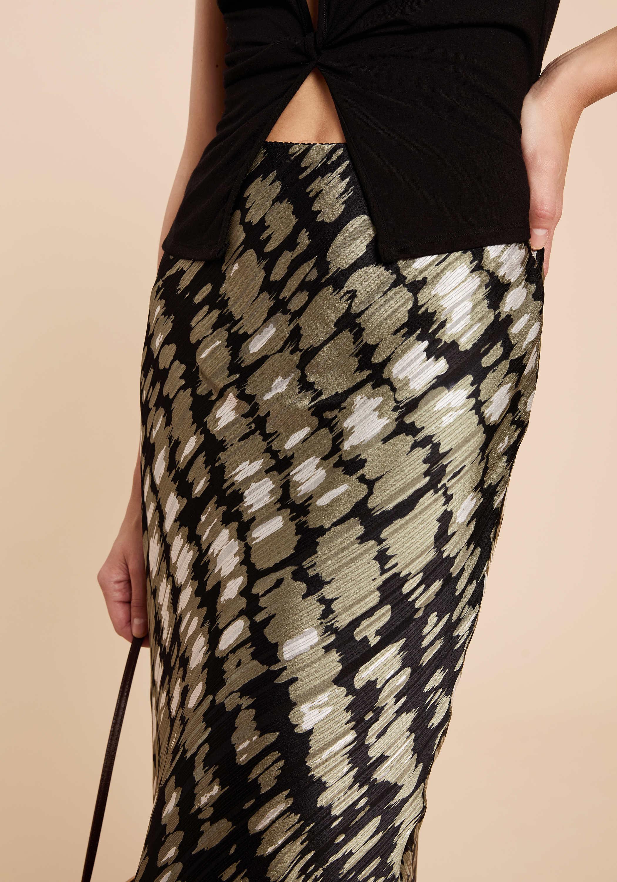The Reece Skirt features a silky textured material and a comfortable elastic waist, offering effortless style and versatility. Its maxi length makes it ideal for both casual and dressier occasions, allowing you to easily transition your look from day to night.
