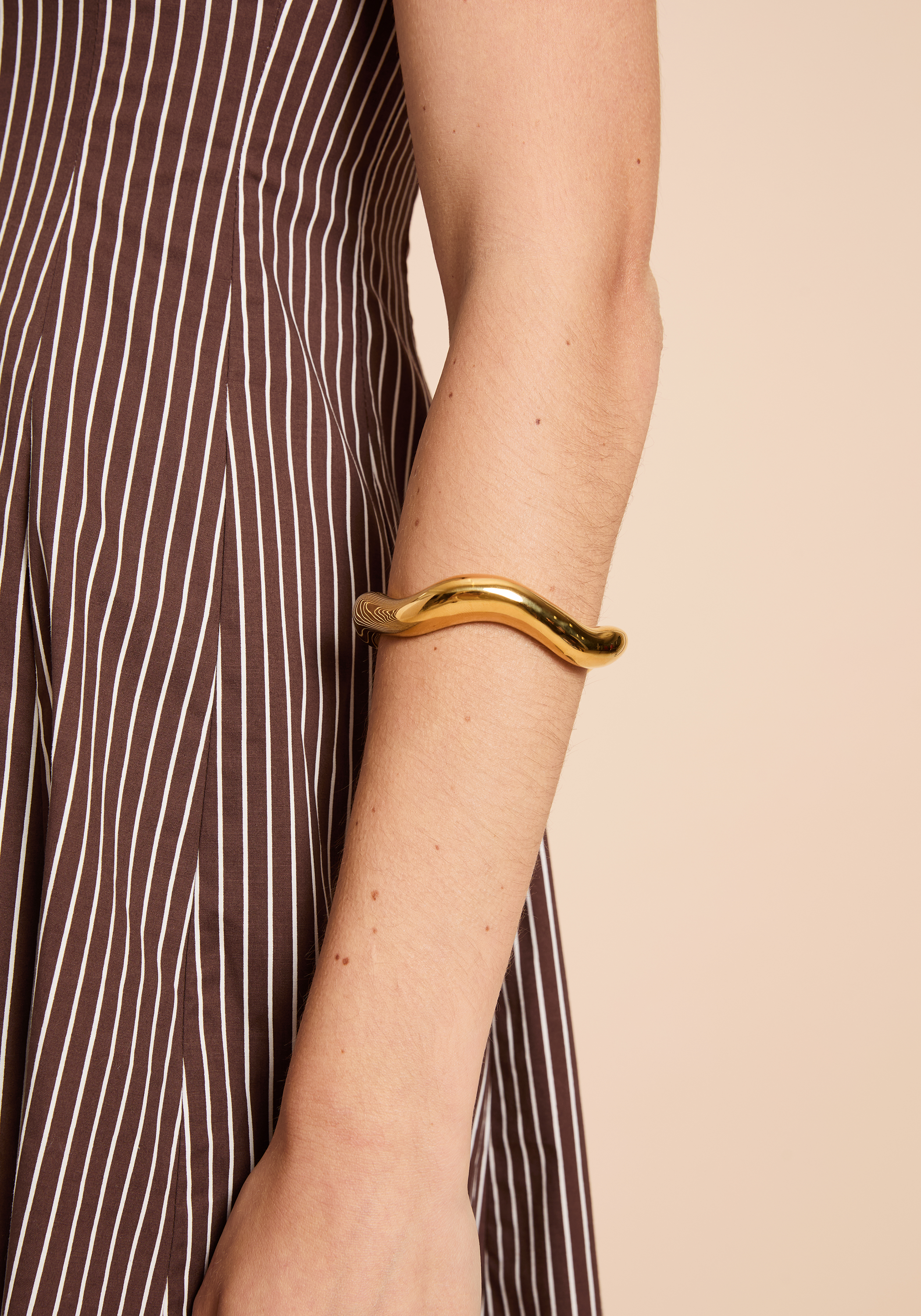 The Wave Cuff Bracelet features an open design with an organically waved shape, offering effortless wearability and a sophisticated aesthetic. Its fluid form adapts comfortably to the wrist, making it both a stylish and practical accessory for everyday elegance.