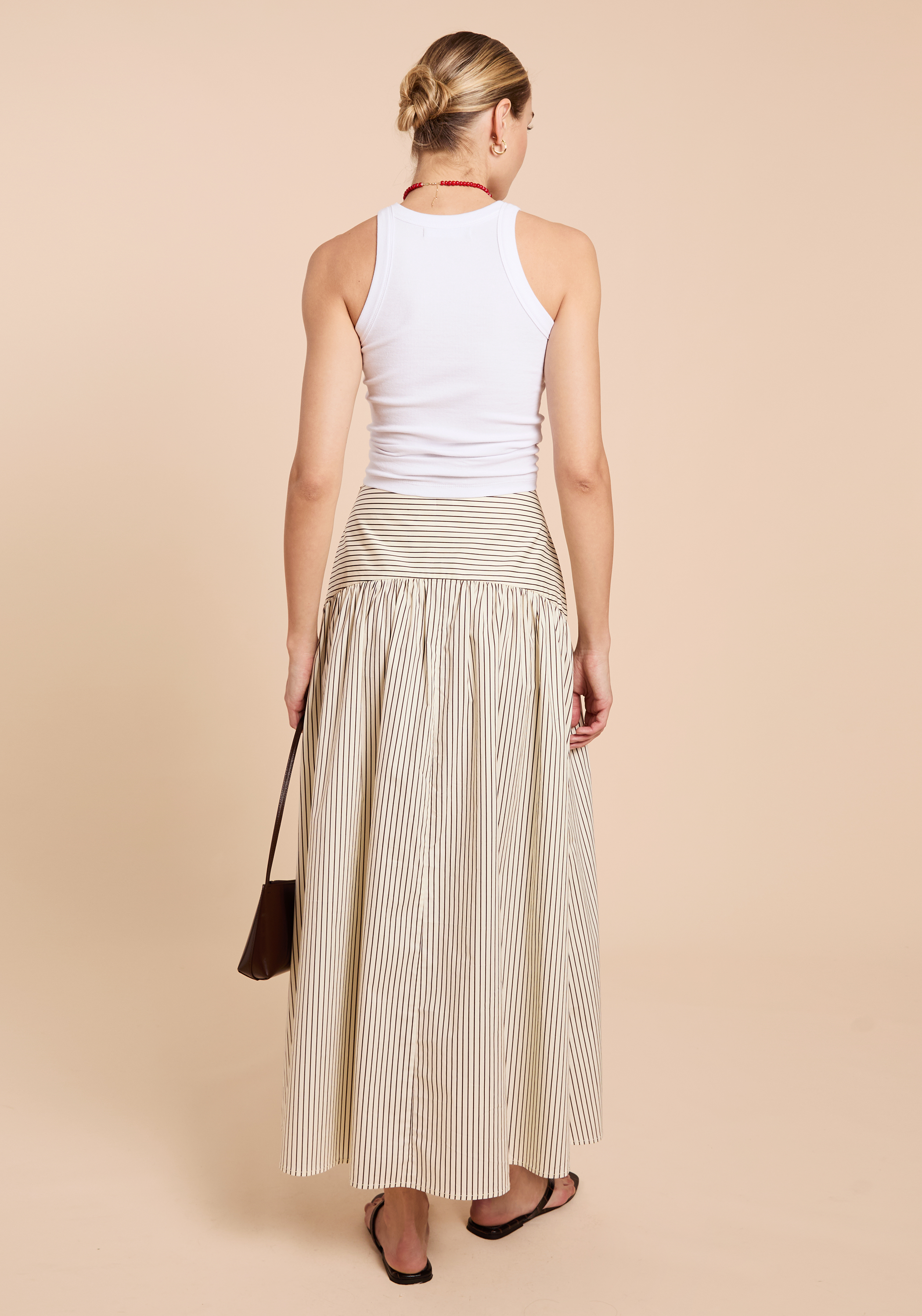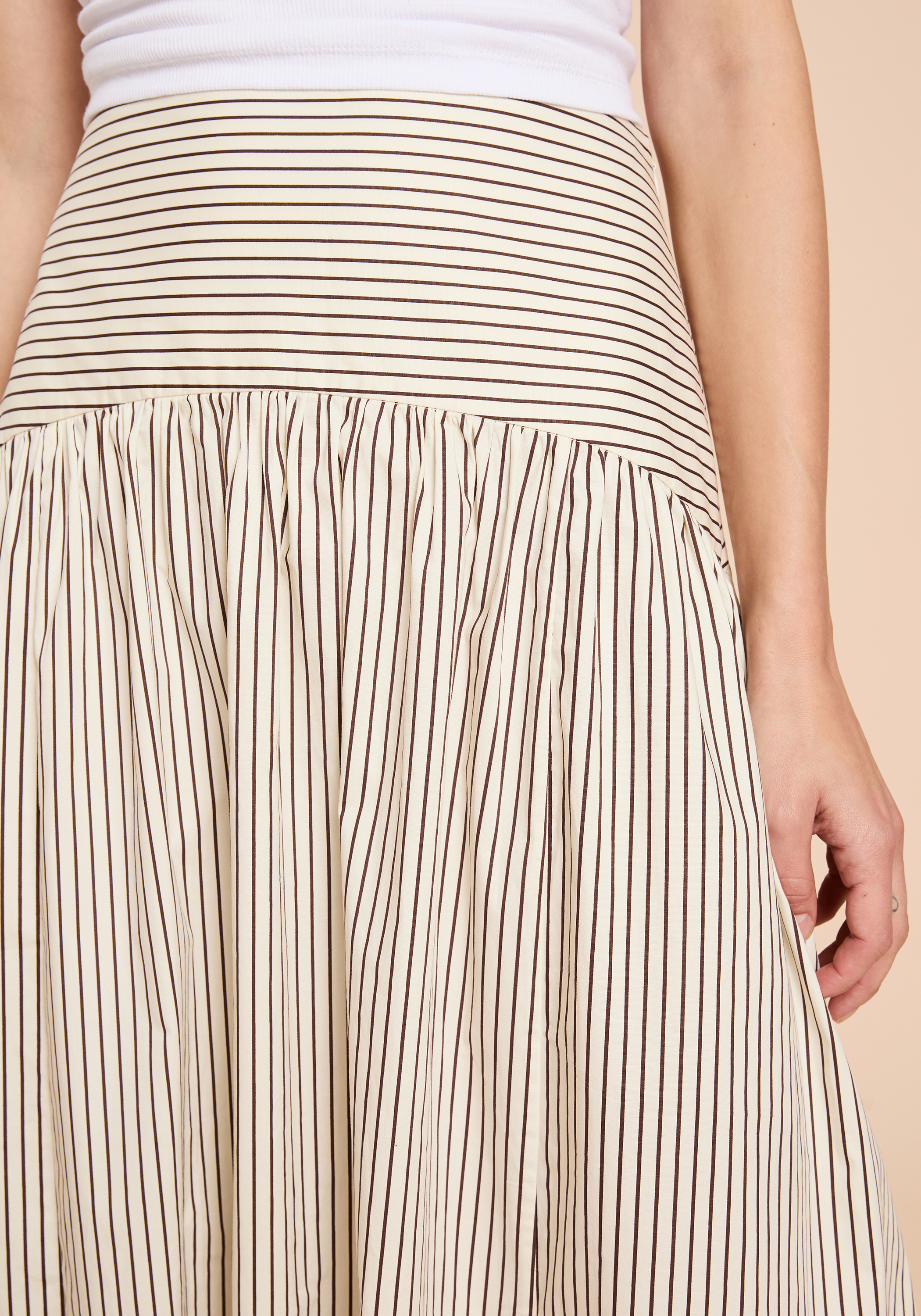 The Vashti Skirt combines a thick waistband and flowy skirt in a striped material for a flattering silhouette. Dress it up or down for endless style options and an effortlessly cool look.