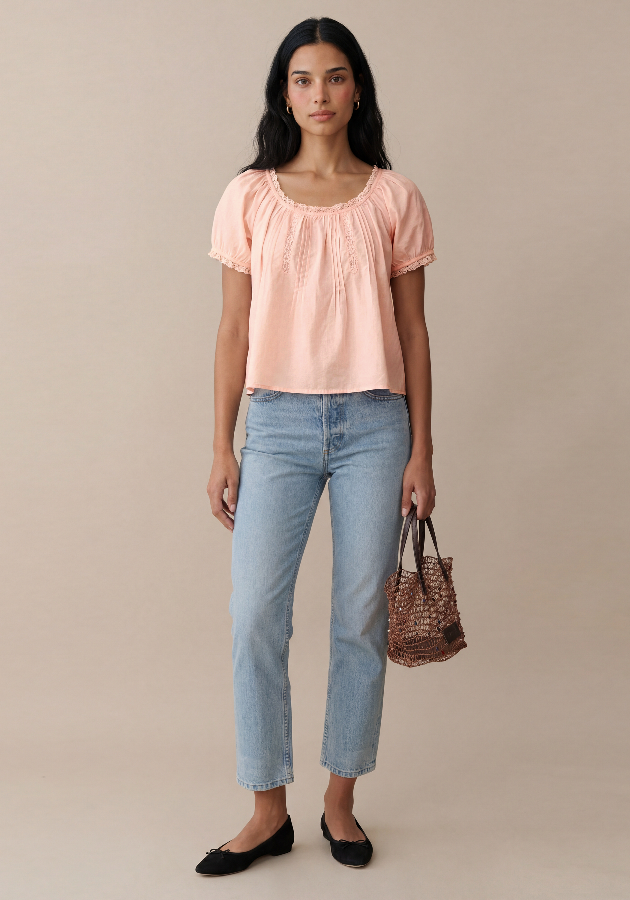 The Isaline Cotton Top is a delicately crafted blouse featuring charming puff sleeves and a light, airy cotton fabric that ensures comfort and breathability. Finished with dainty lace trim and sweet details for an easy, romantic look.