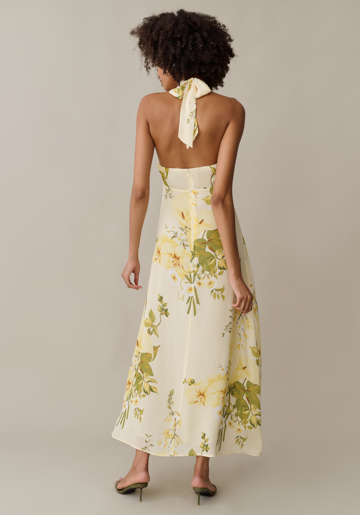 Turn heads in the fabulous Melina Dress. The chic keyhole design is balanced with a sophisticated high neckline, secured by an adjustable halter tie. The modern silhouette is complimented by the soft and sweet floral print for the perfect mix of cool and romance.