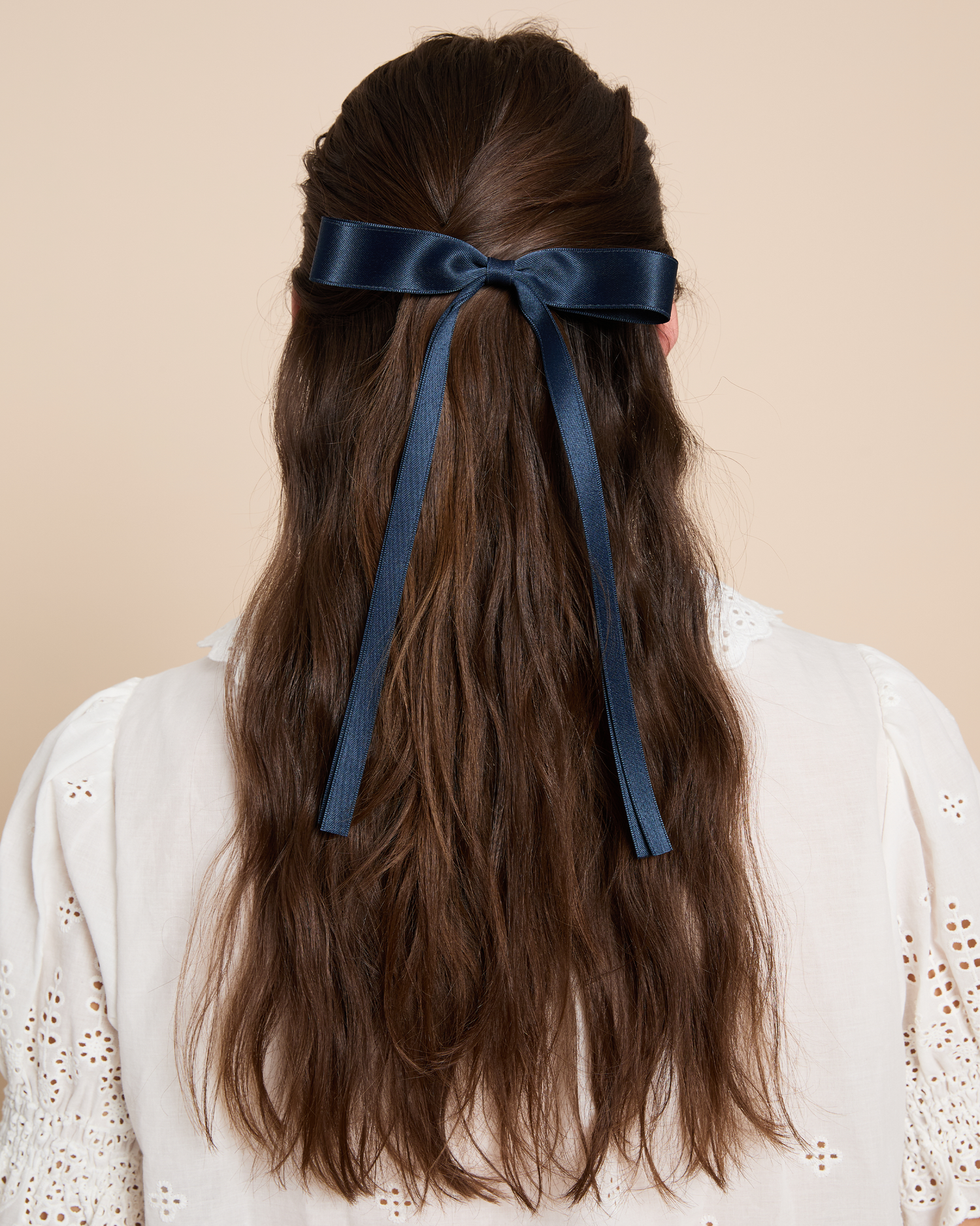 Add a touch of charm to any look with the Mabel Hair Bow. Made from a silky ribbon with a versatile clip in design for easy styling, it's the perfect sweet accessory.