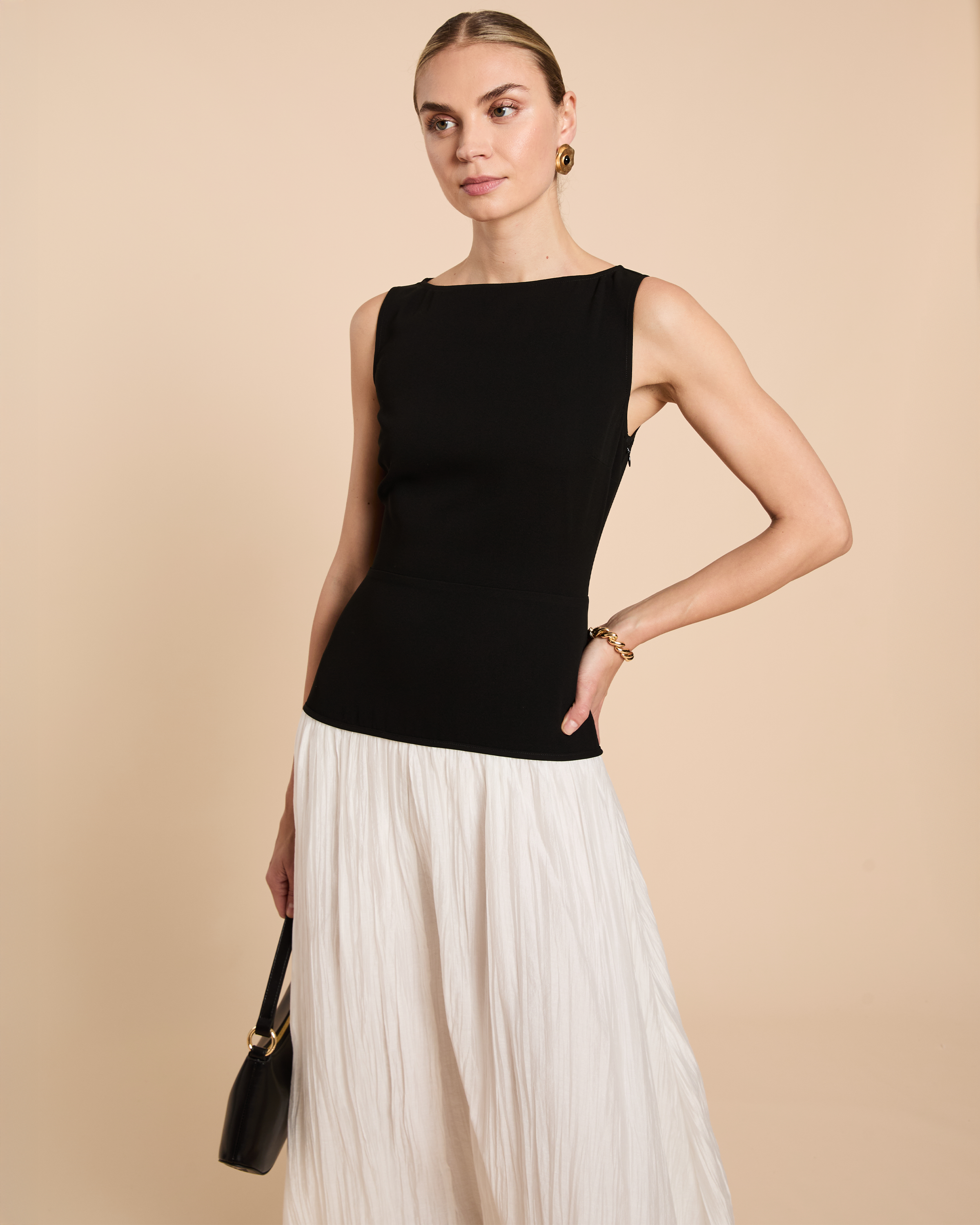 The Erin Dress boasts an elegant drop waist silhouette, complimented by a floaty pleated skirt and a high neckline. Timeless and gorgeous, this dress is perfect for dressing up or down.