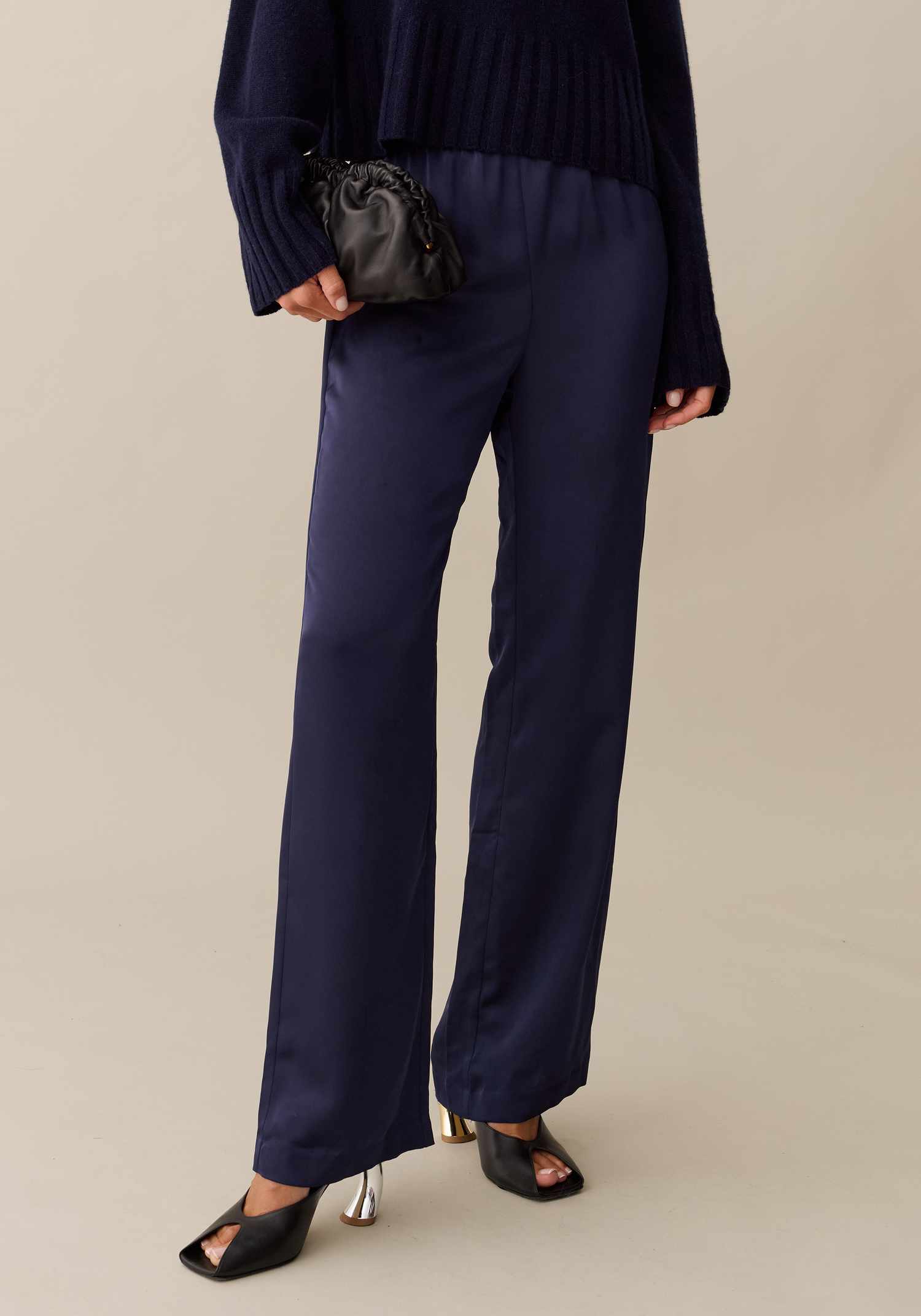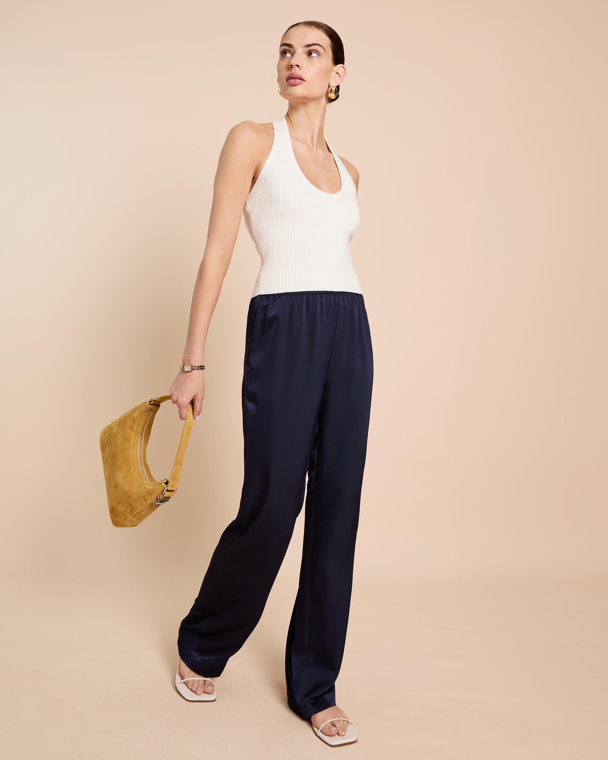 The Valencia Pant combines a silky, lightweight fabric with a comfortable elastic waist, creating an elevated staple that adapts seamlessly from casual to refined looks. Its versatile design allows effortless styling, making it an essential piece for a polished yet comfortable wardrobe.