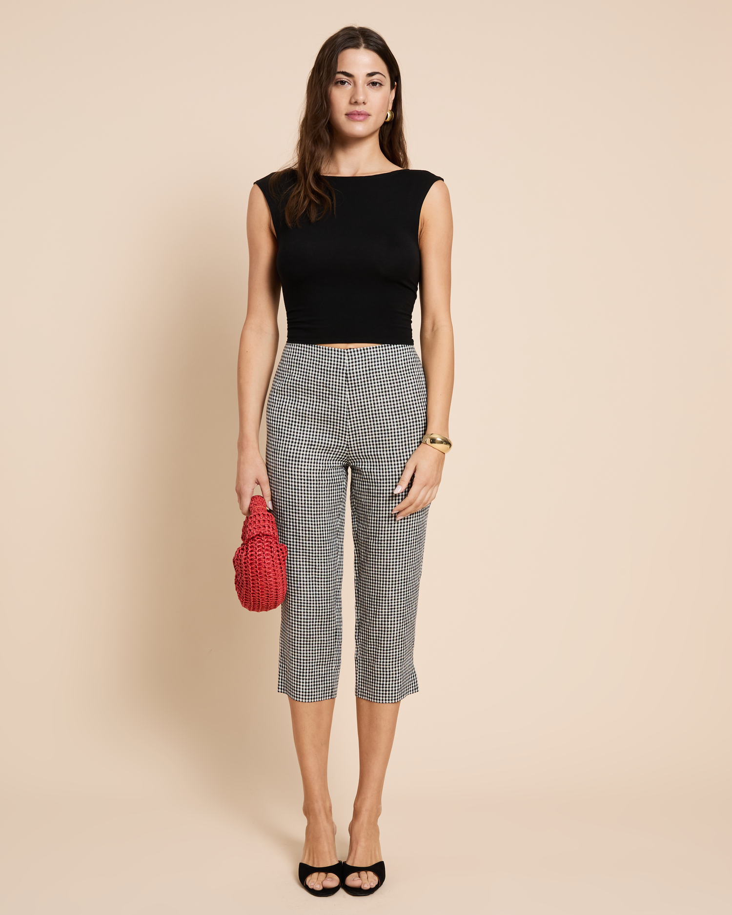 Expertly crafted with a linen-cotton blend, the Beyonca Capri offers a flattering high-waisted fit and fun gingham print. Perfect for adding a charming touch to any outfit we love this comfortable and stylish capri.