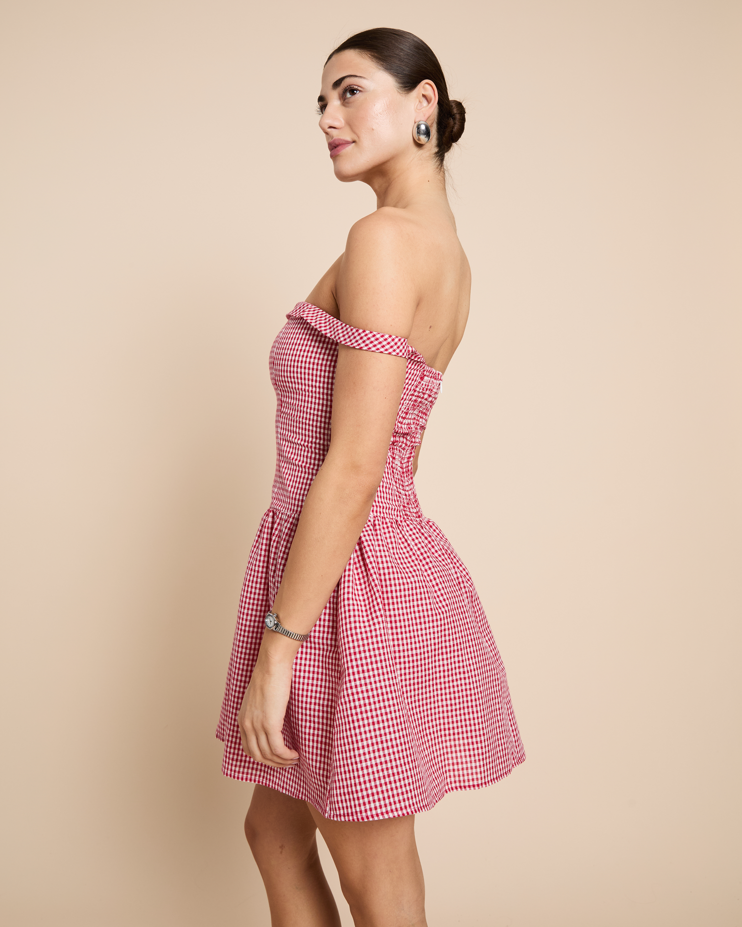 The Clara Mini Dress combines a fitted bodice with sweetheart neckline and delicate off-shoulder detail. Its drop waist transitions to a fun and flirty mini skirt, creating an all around adorable dress.