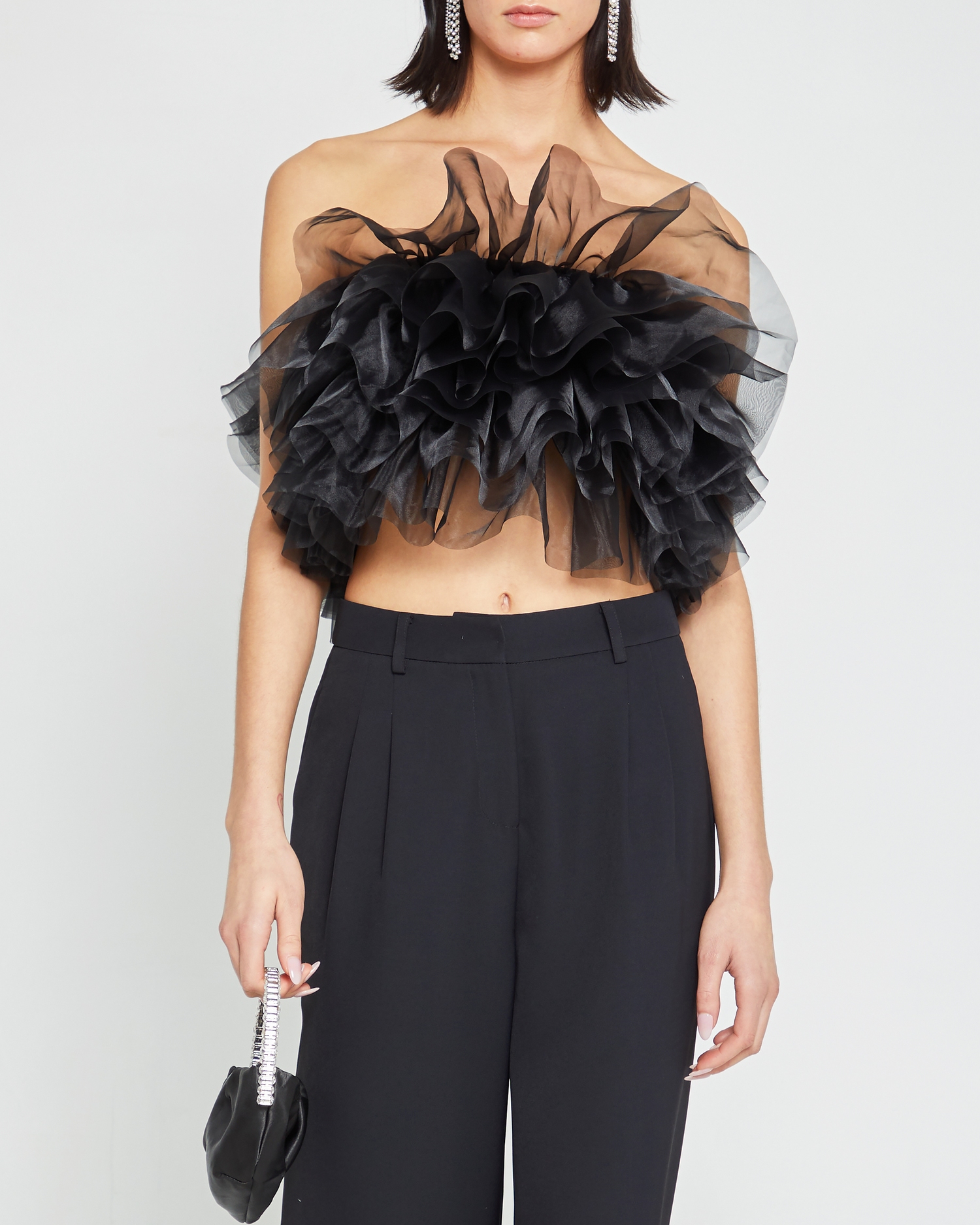 The Leena Top is a fashionable and fun choice for any party. Crafted from lightweight tulle, it has beautiful cascading layers and will create a twirl-ready look. Perfect for any celebration.