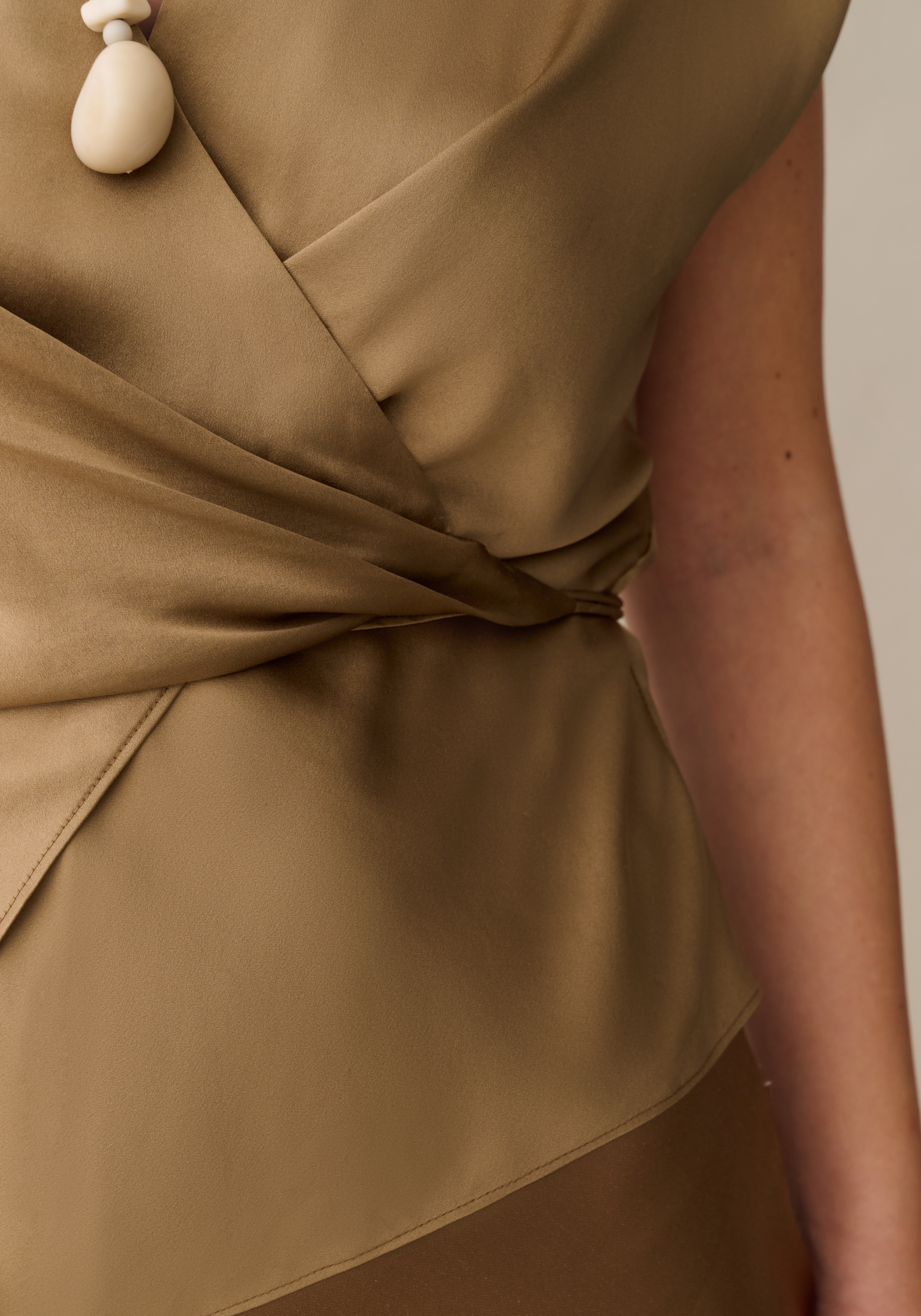 Crafted from 100% silk, the Talitha Silk Top features an elegant hue and a flattering wrap silhouette. This versatile piece transitions seamlessly from casual to formal occasions, offering both comfort and sophistication. Elevate your wardrobe with this timeless design that pairs effortlessly with a variety of styles.