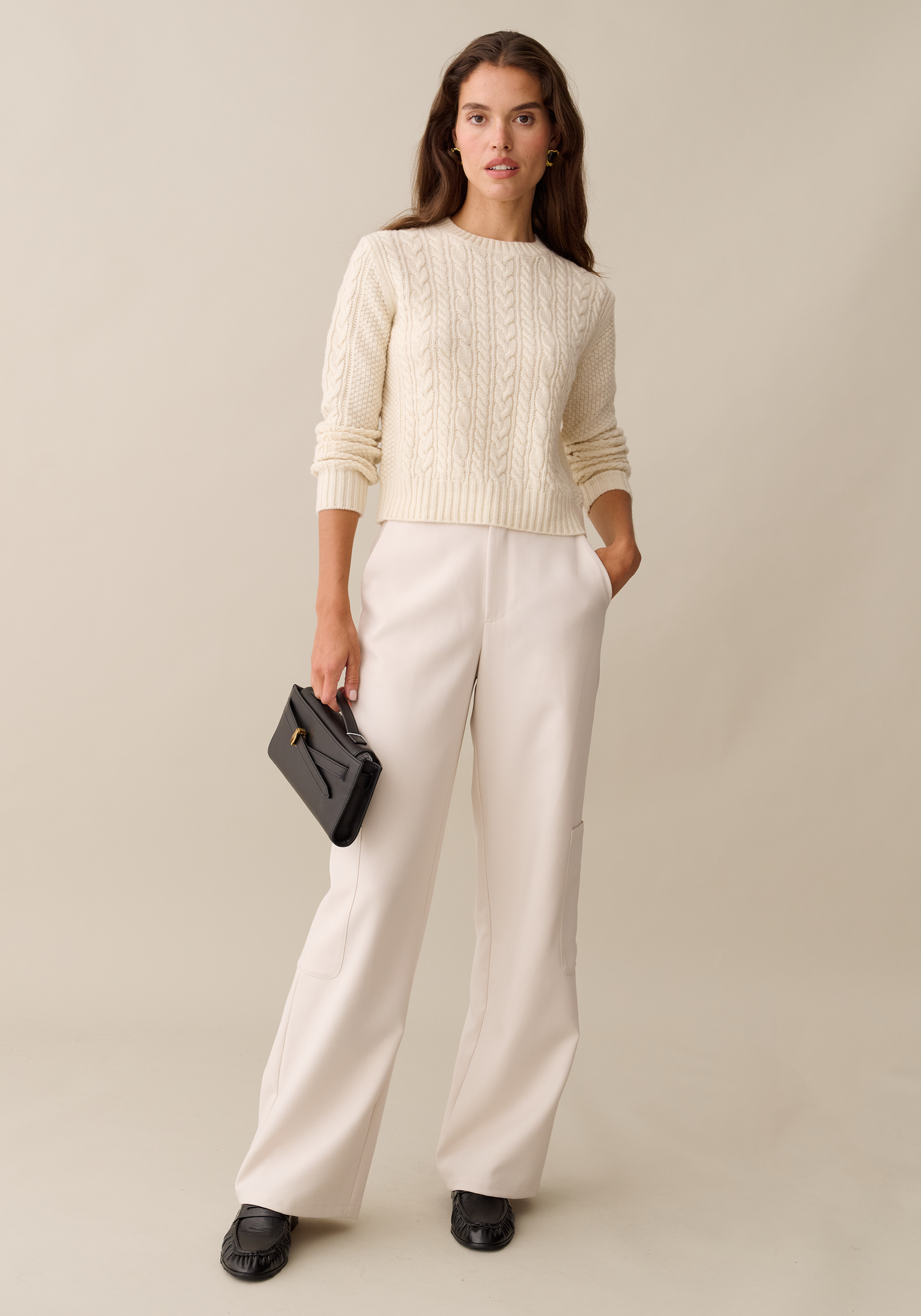 Elevate your work wardrobe with our Aster Pants. The gorgeous sleek slack features cargo pocket detail for added convenience and an elevated, sophisticated style. Made with a smooth cream hue, these pants will add a touch of luxury to any outfit.