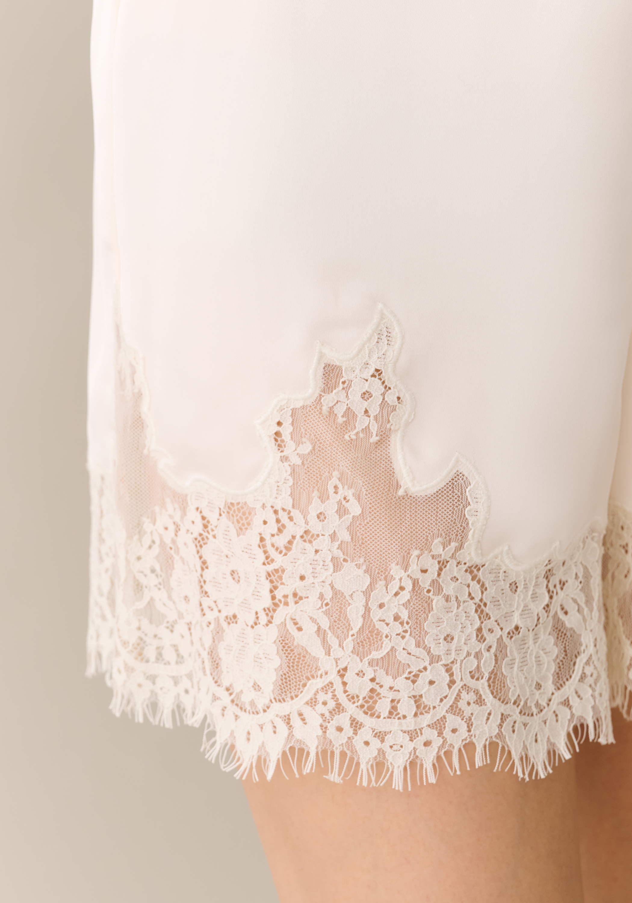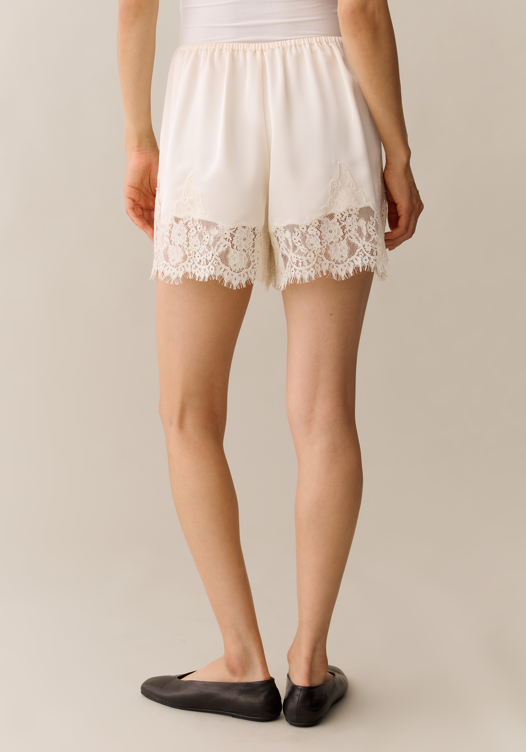 The Rosa Short is a sweet style staple. Made from with silky fabric and delicate lace trim for a charming finish. Designed with an easy elastic waist, it offers comfortable wear and a flattering fit, perfect for everyday elegance and relaxed sophistication.