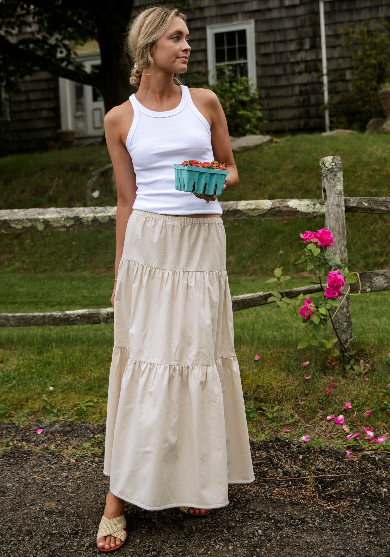 The Madalyn Maxi Skirt offers effortless everyday style with its versatile neutral hue, making it easy to pair with anything. Designed for comfort, it features a stretchy elastic waistband and a flowy, tiered silhouette. Delicate embroidered edging at the hem adds a refined touch, elevating this skirt from casual to chic with ease.