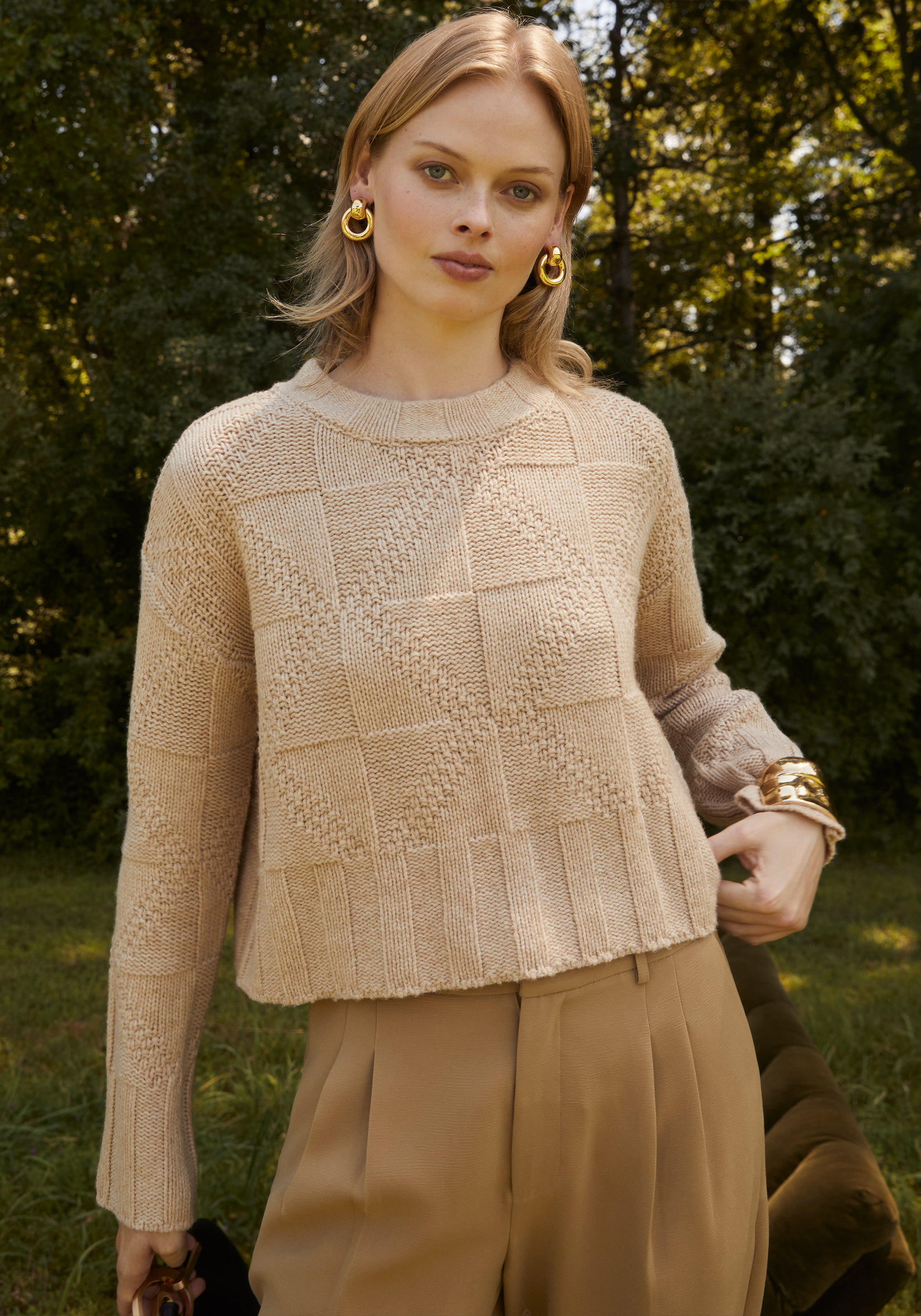 The Isby Wool Sweater combines a sophisticated patterned knit with a classic crewneck design, offering an elevated take on casual wear. Its relaxed, cropped fit ensures effortless layering and comfort, making it a versatile addition to any wardrobe.