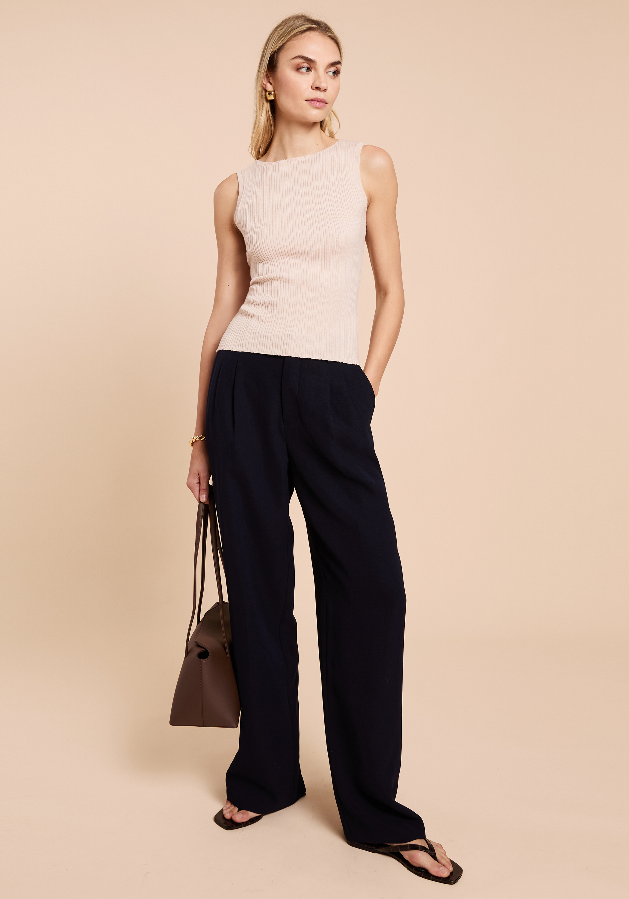 The Nina Top features a super light, textured knit that ensures breathability and comfort. Its high neckline adds a refined touch, while the easy, chic silhouette offers effortless style. Crafted from soft, easy fabric, this top is perfect for layering or wearing on its own, combining comfort with a polished look.