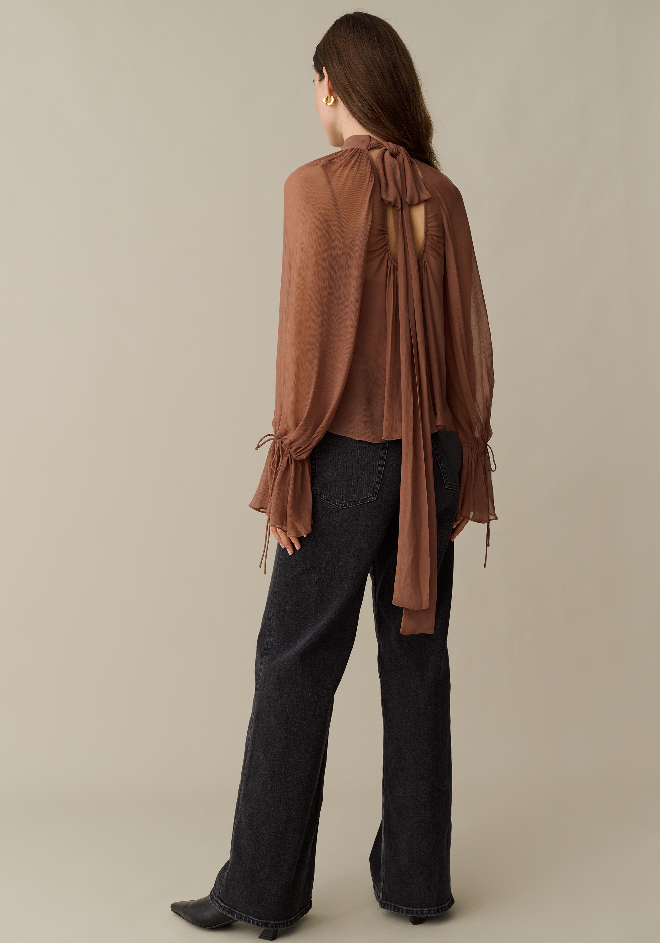 A beautiful chiffon blouse with a relaxed flowy fit, the Aurelia Top brings an elevated boho and ethereal feel to any outfit. Featuring billowy sleeves and a gorgeous back necktie, this top offers a touch of romance to your wardrobe.