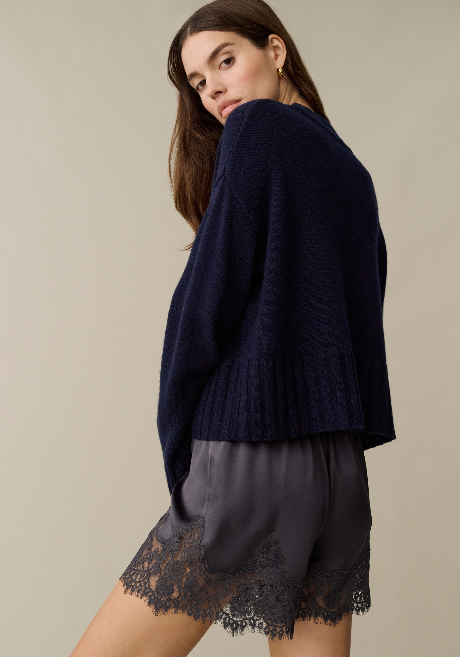 The Rosa Silk Short is a sweet style staple. Made from with silky fabric and delicate lace trim for a charming finish. Designed with an easy elastic waist, it offers comfortable wear and a flattering fit, perfect for everyday elegance and relaxed sophistication.