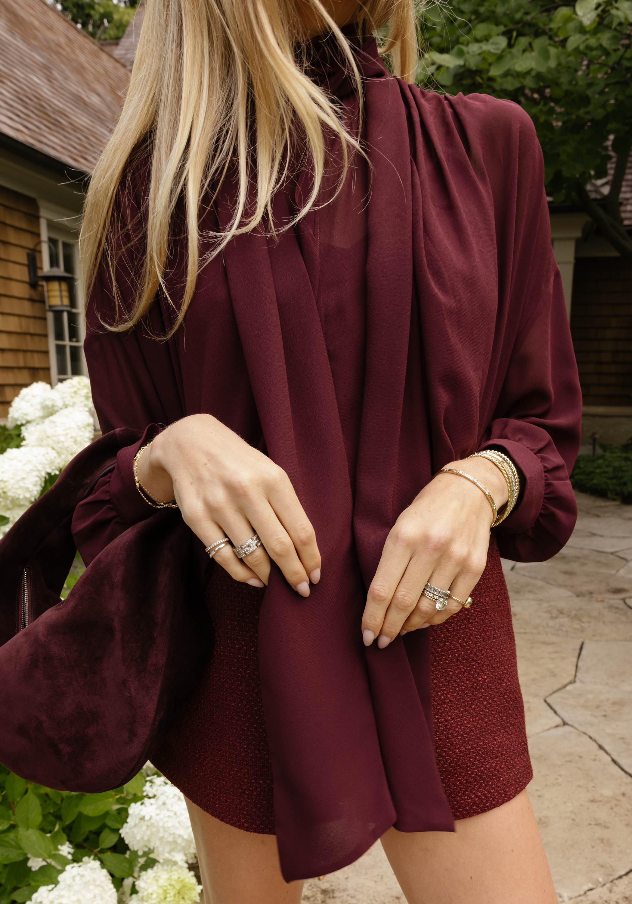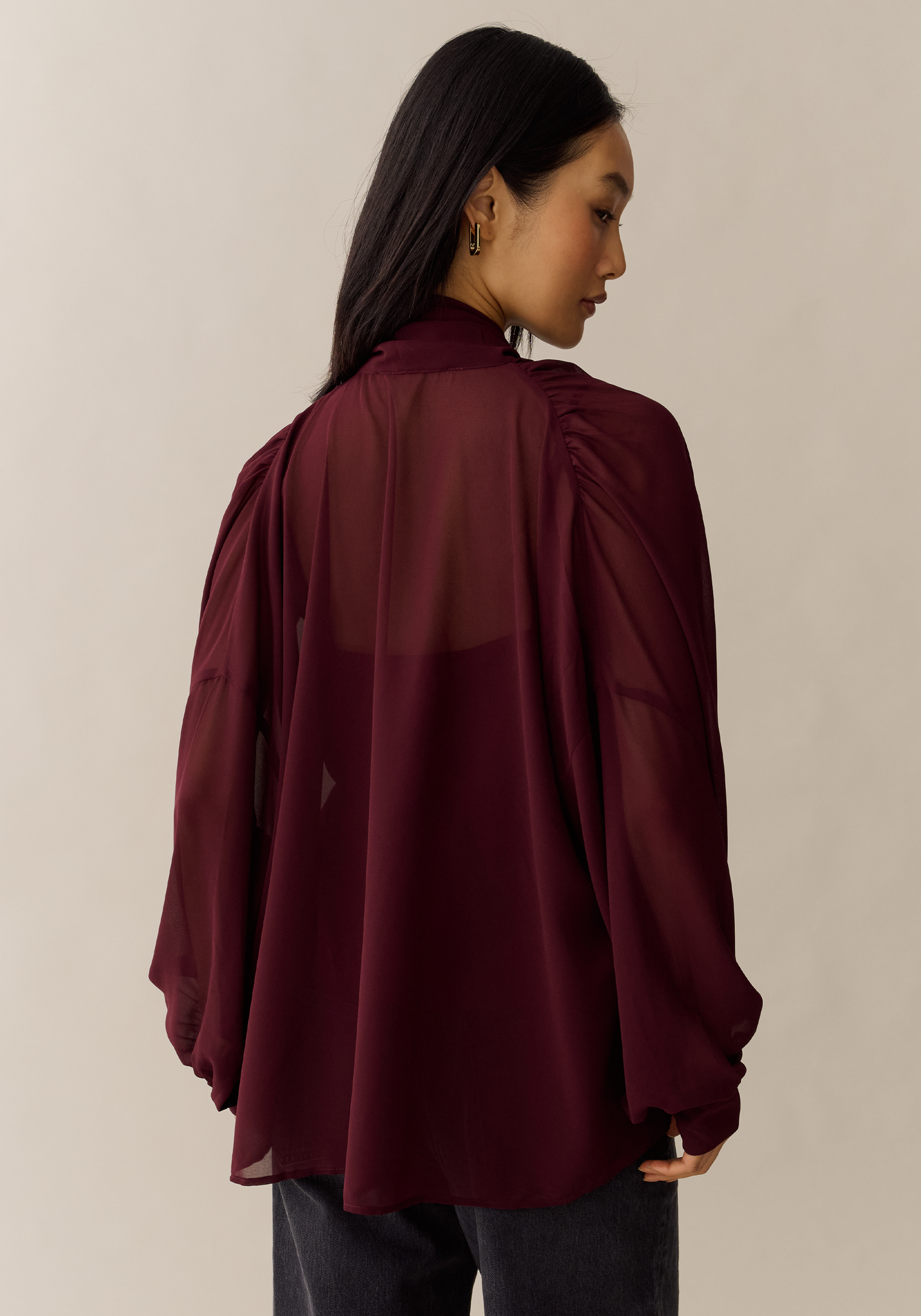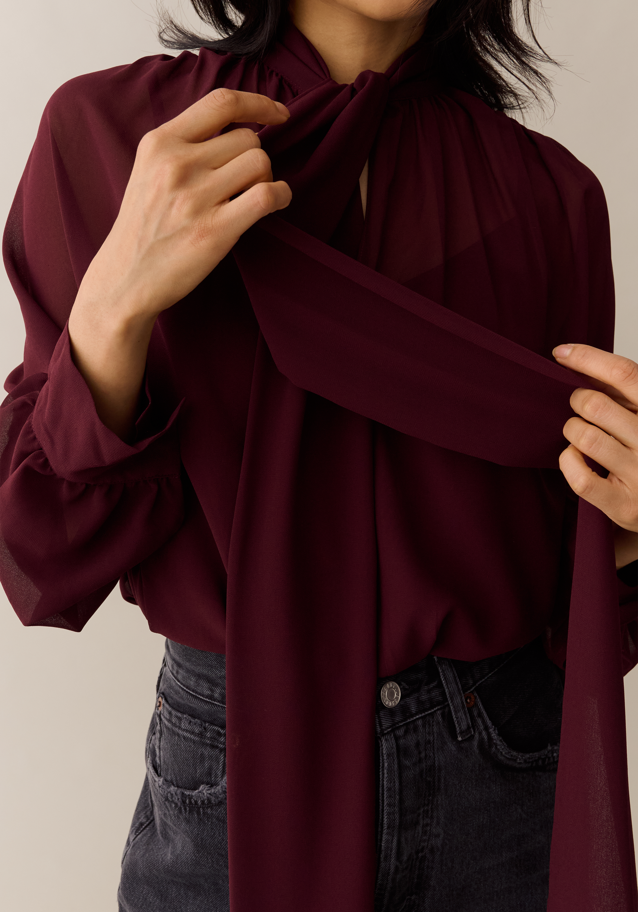 The Megan Top is crafted from light, airy chiffon in a rich, vibrant hue that adds effortless elegance to any wardrobe. Featuring versatile neck ties, this blouse can be styled in multiple ways—from a classic bow to a relaxed knot—allowing you to personalize your look with ease. Perfect for layering or wearing on its own, the Megan Top balances delicate fabric with adaptable design for sophisticated, everyday wear.