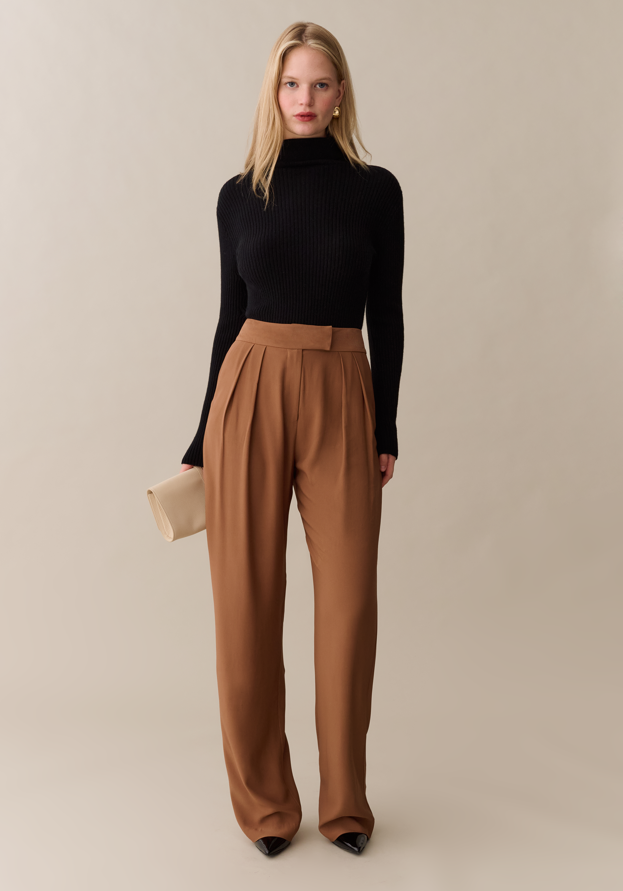 The Naira Pant features a high-waisted design that enhances your silhouette with a flattering, long-legged look. Crafted with pleats and an effortless loose fit, these pants provide both comfort and style. Functional pockets add practicality, making them an essential choice for polished, everyday wear.