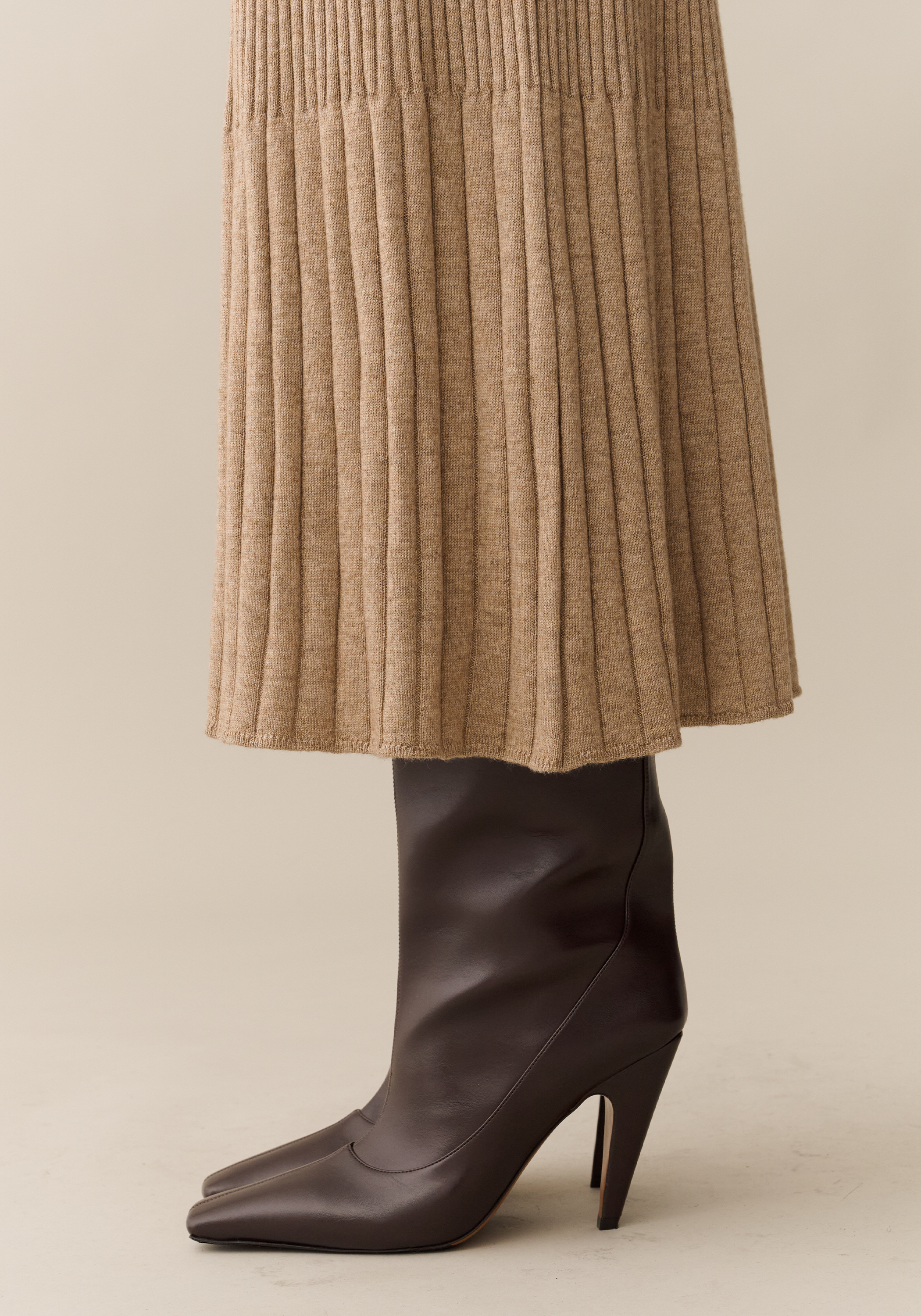 Done in an easy neutral hue, this soft sweater dress can easily be dressed up or down. Designed with a variety of ribbed knit patterns for a flattering fit and finished with a cool, collar detail.