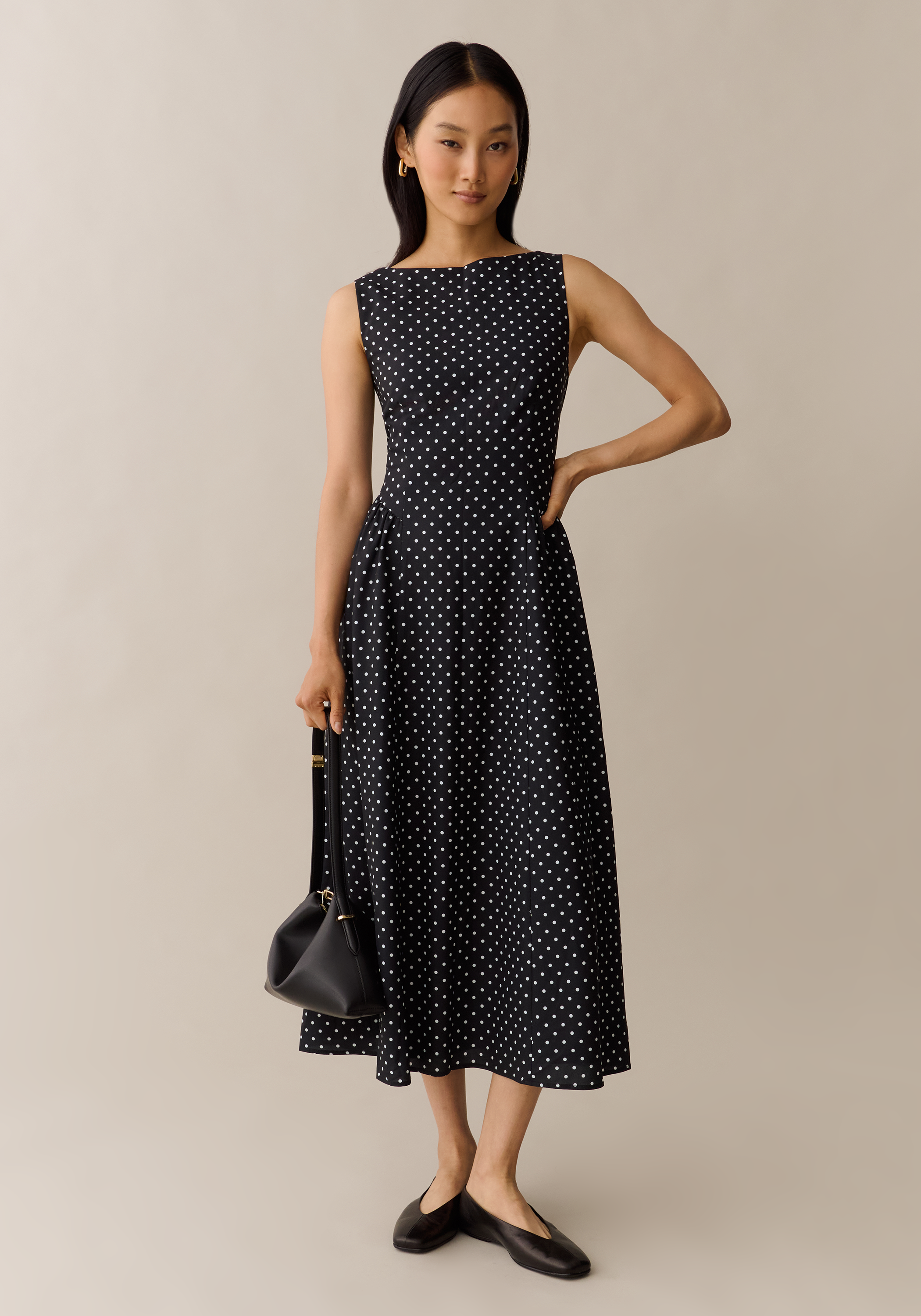 The Ryley Dress is expertly crafted with airy printed chiffon, and a chic and classic high neckline. This tea length dress is perfect for any formal occasion, providing a timeless and elegant look.
