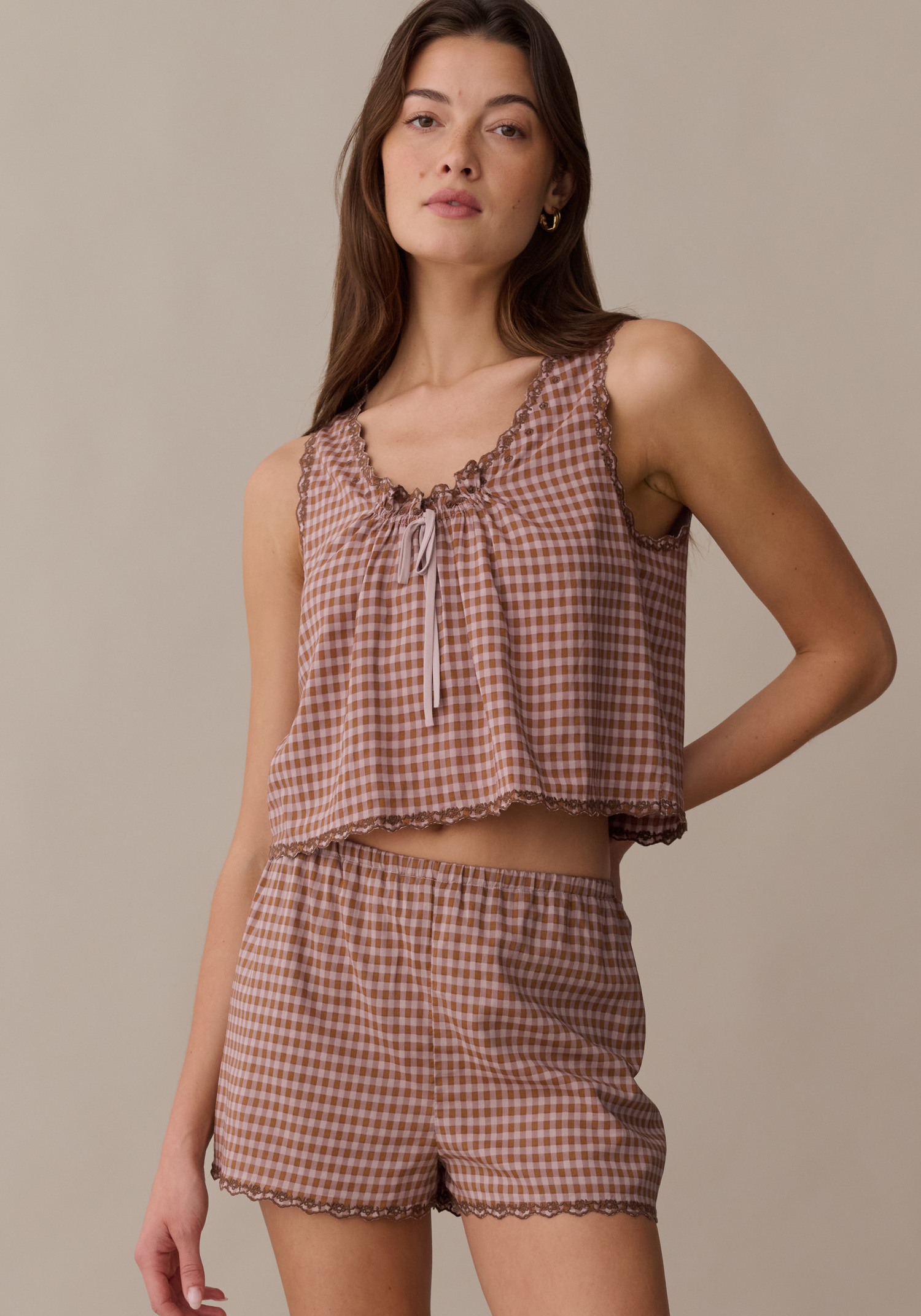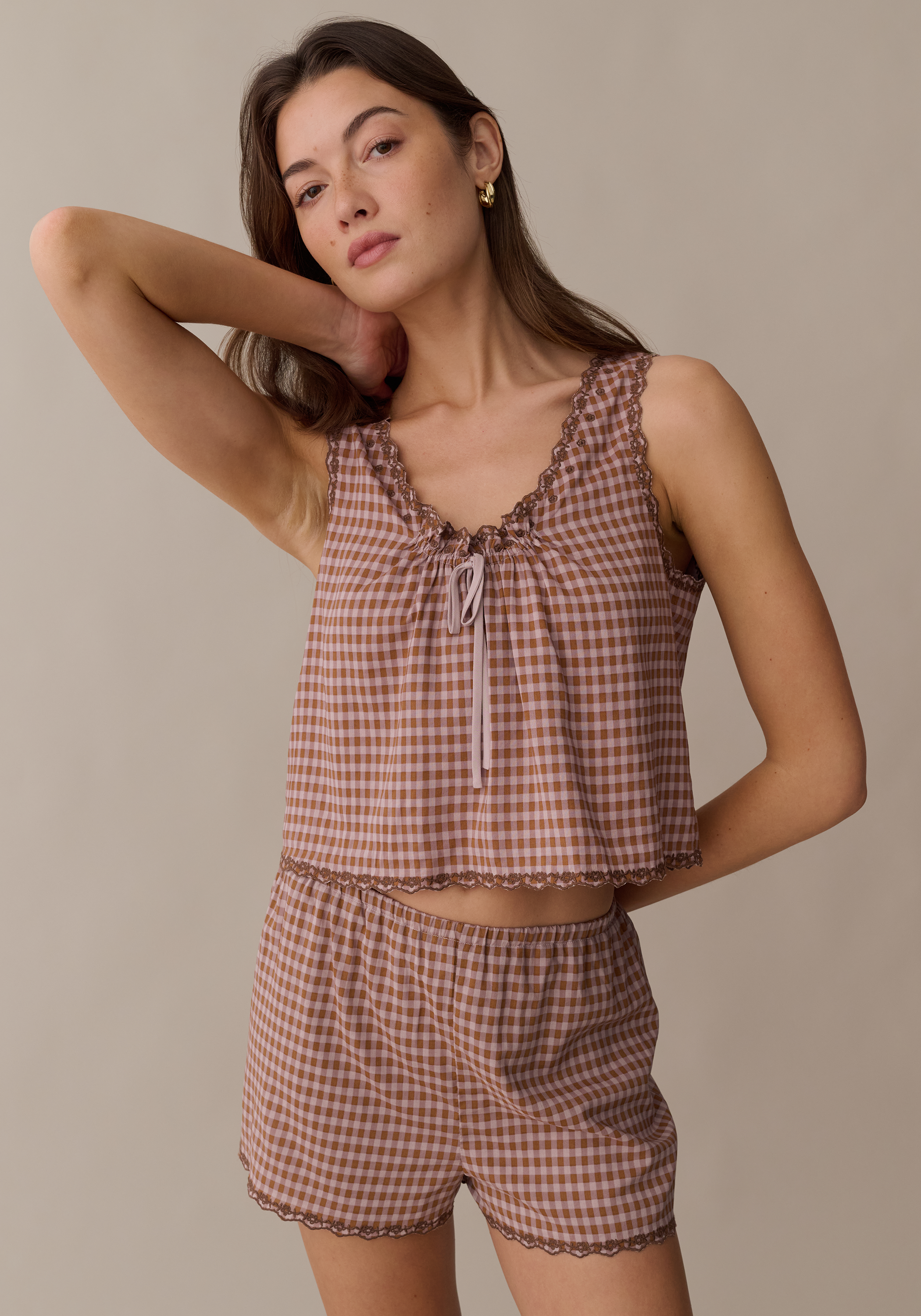 Introducing the Cora Top, the perfect pretty piece for lounging around or sitting in the sun. Done in a soft and airy cotton blend, this top features a slightly cropped and relaxed fit for ultimate comfort. Finished with adorable details like the front ribbon and embroidered trim.