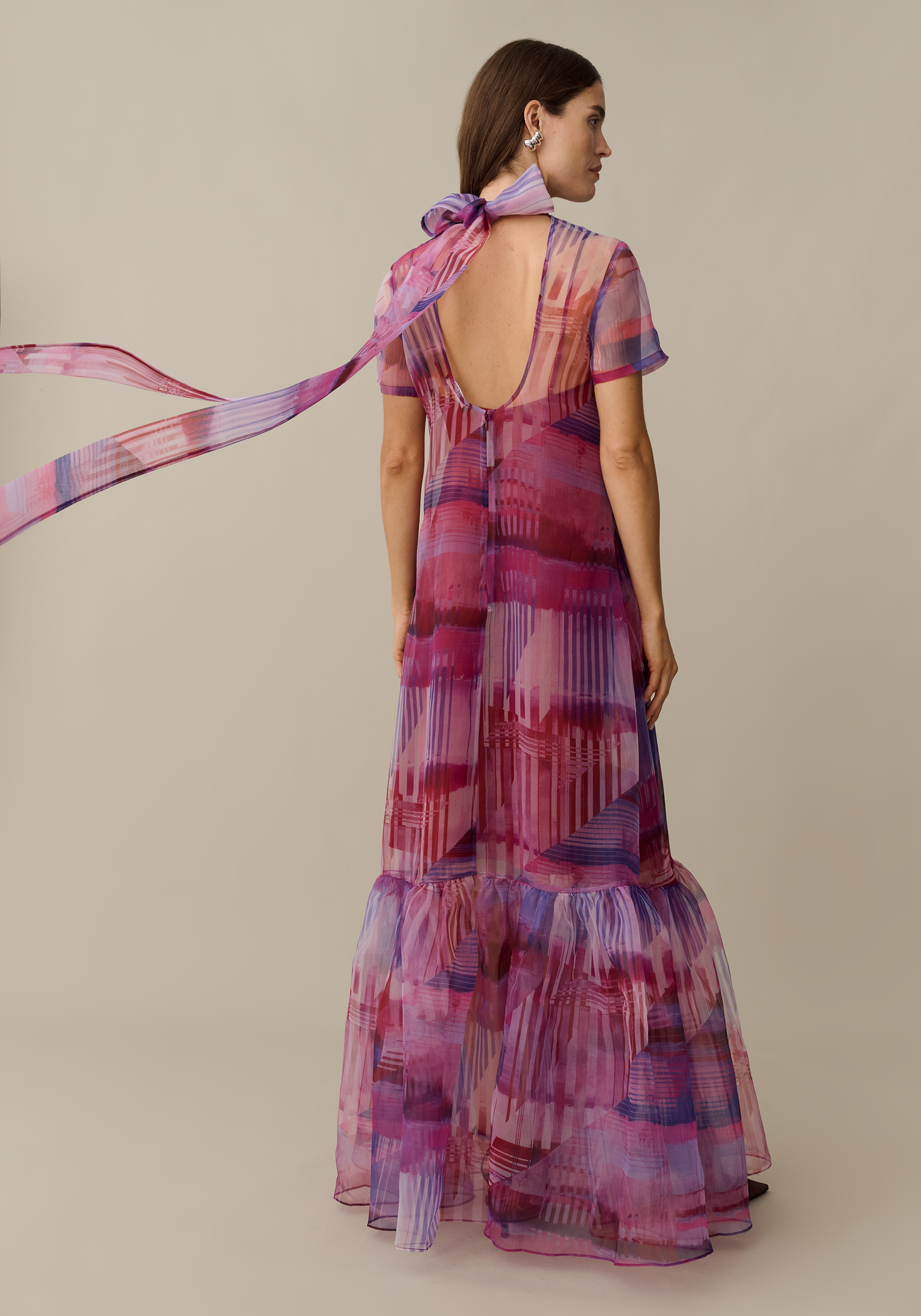 The Melody Dress features sheer organza fabric and an inner slip for a stunning, elegant look. Its back bow detail adds a touch of sophistication. With a maxi length, this gown is perfect for formal events.