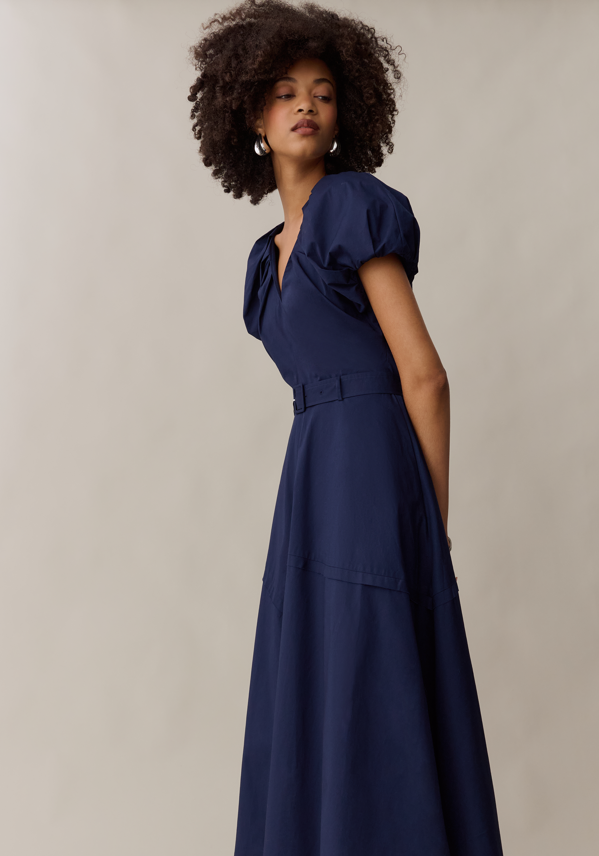 Discover understated sophistication with the Vivianne Dress. Voluminous short sleeves and a graceful A-line skirt combine to create an elegantly flattering silhouette that works from morning meetings to evening occasions.