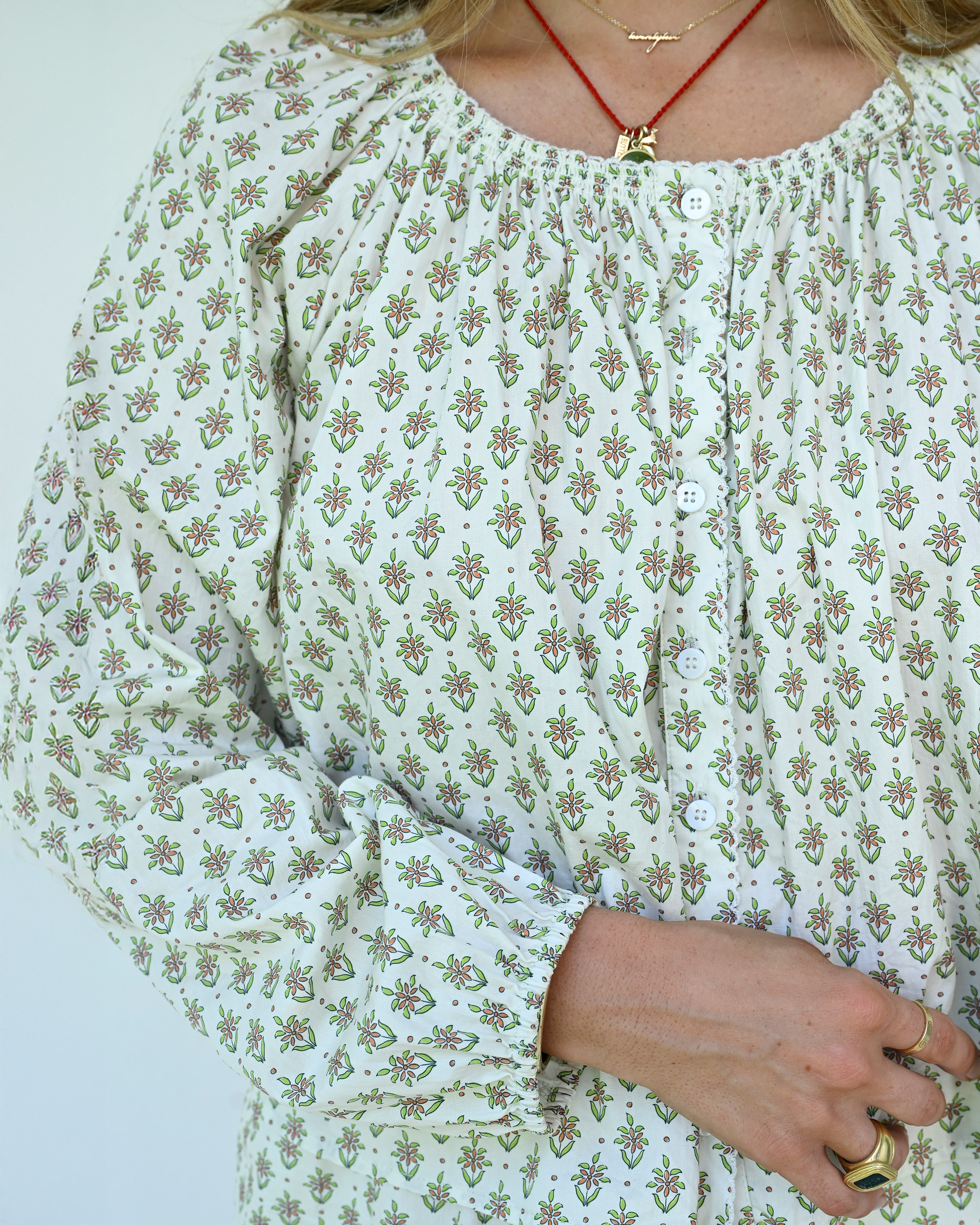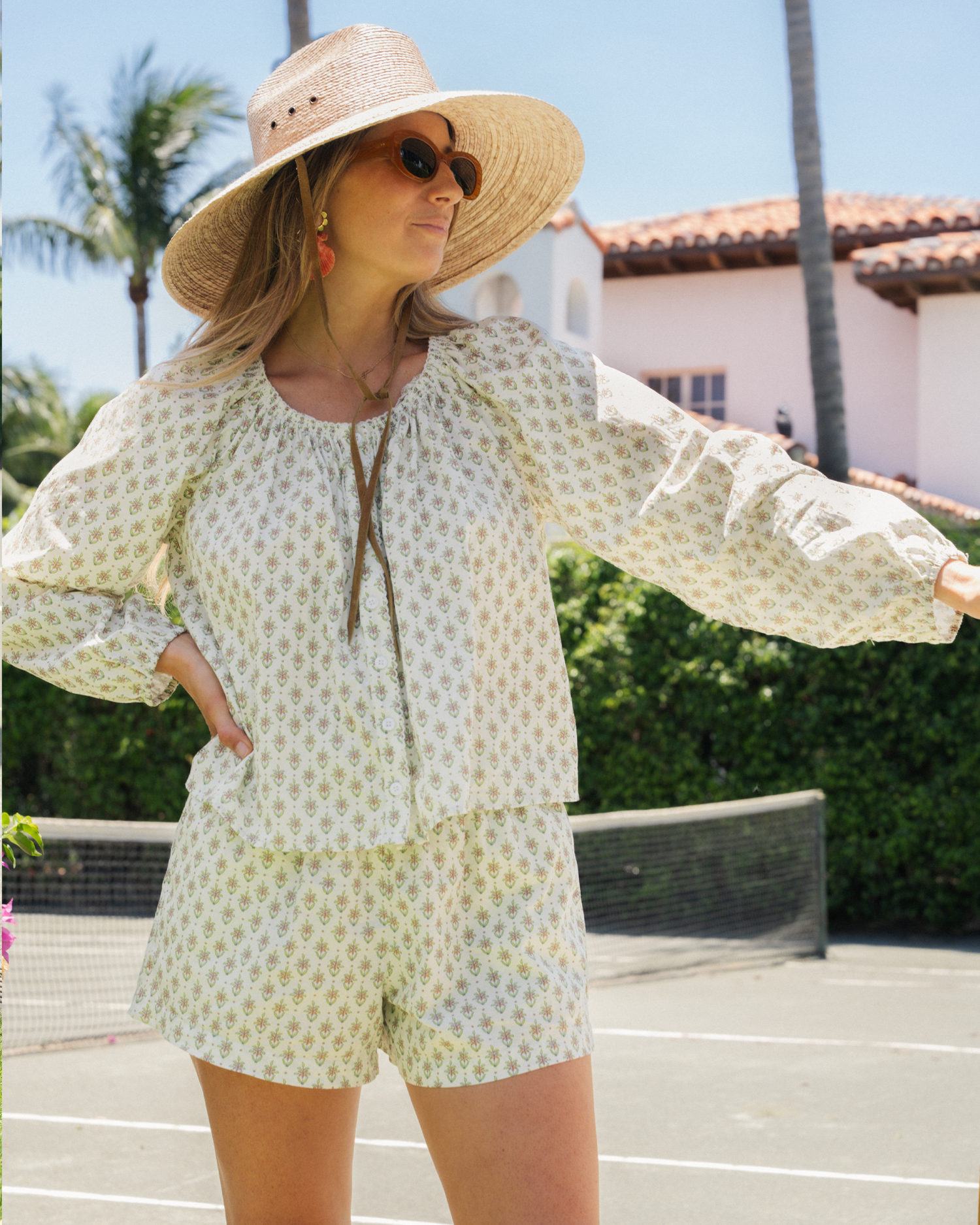 This is a perfect set for summer, crisp cotton but still feels breezy even in hot weather. The quality of so, I loved the print even more in person! Scallop detailing around the neckline is really pretty. Overall a great set!